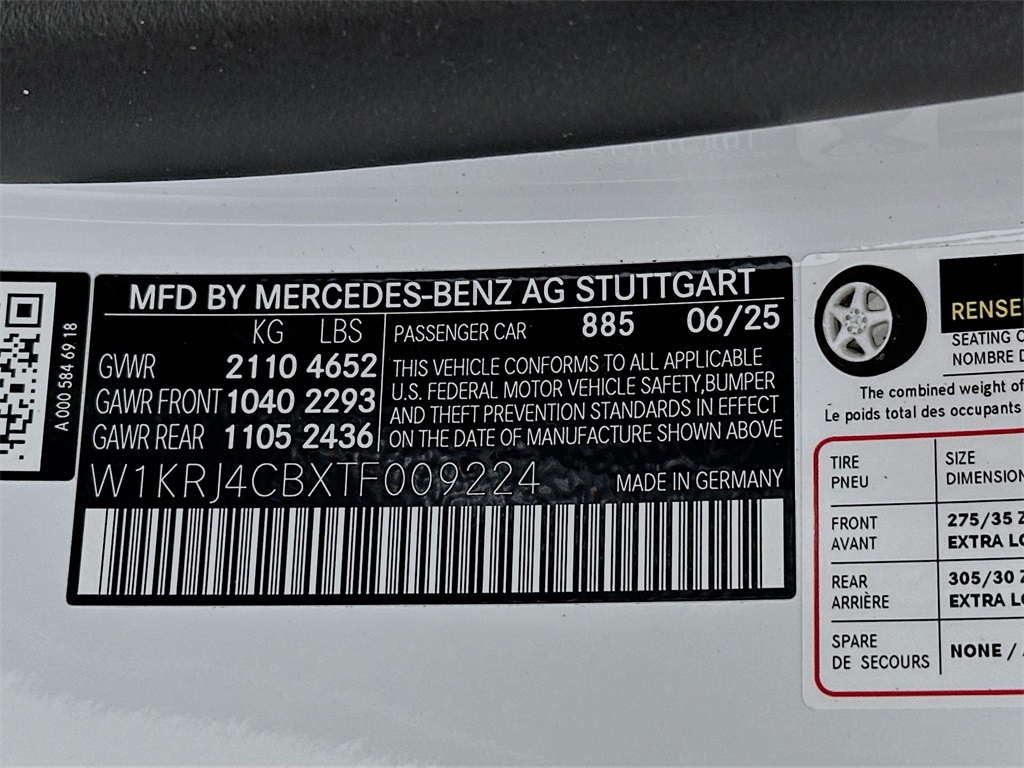 - VIN : W1KRJ4CBXTF009224
