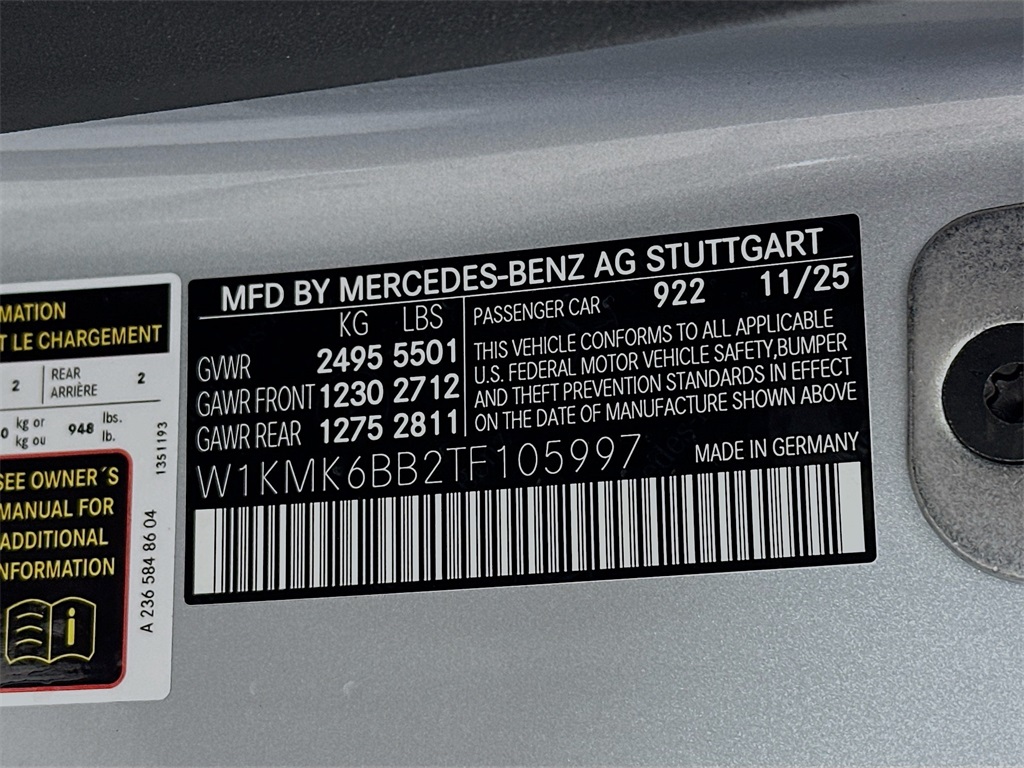 - VIN : W1KMK6BB2TF105997