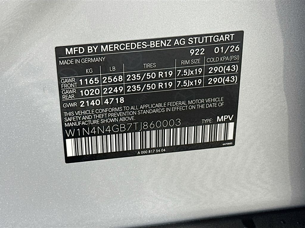 - VIN : W1N4N4GB7TJ860003