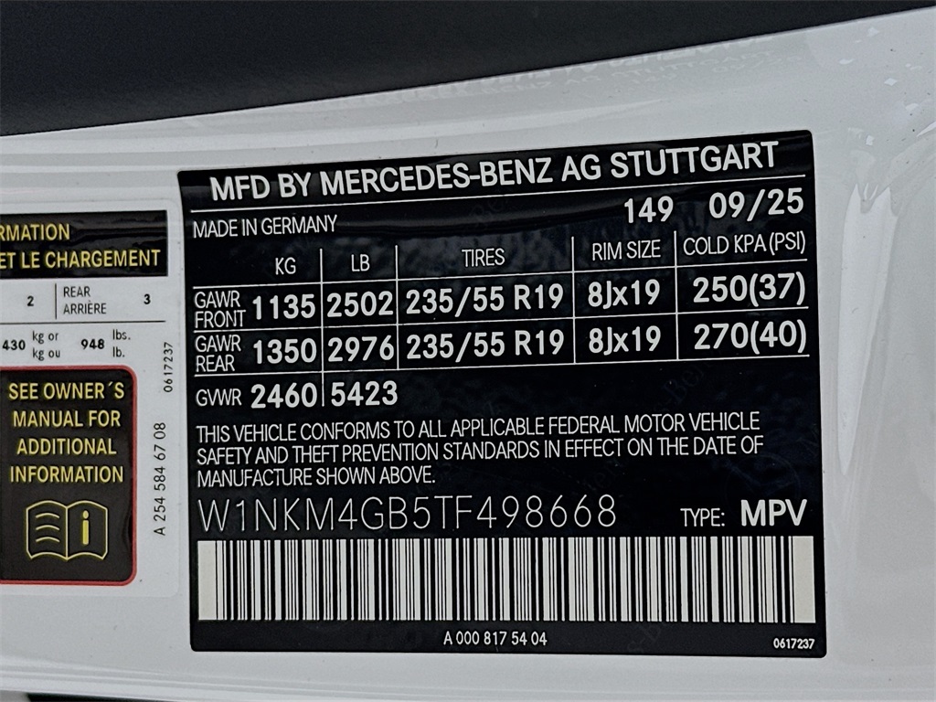 - VIN : W1NKM4GB5TF498668