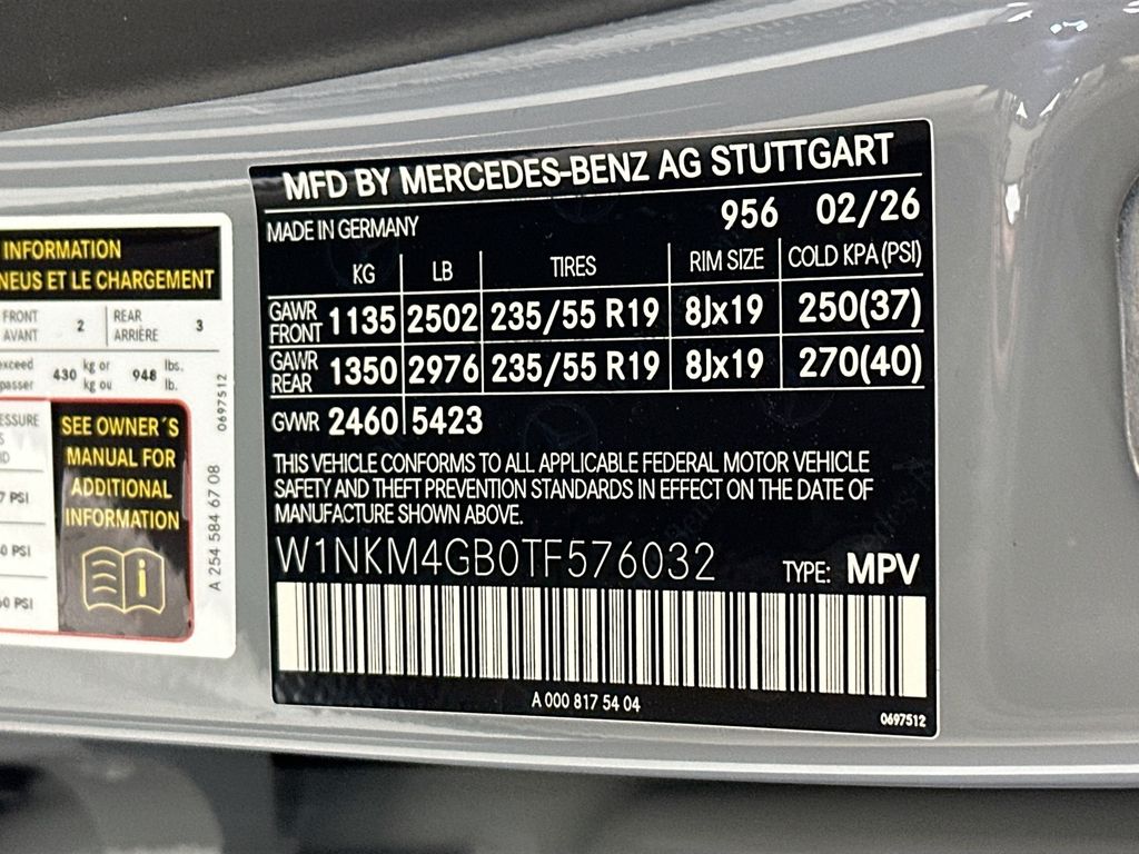 - VIN : W1NKM4GB0TF576032