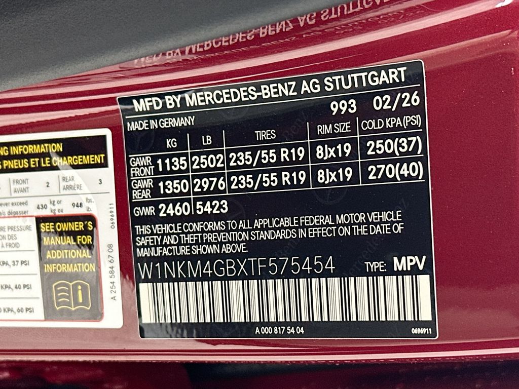 - VIN : W1NKM4GBXTF575454