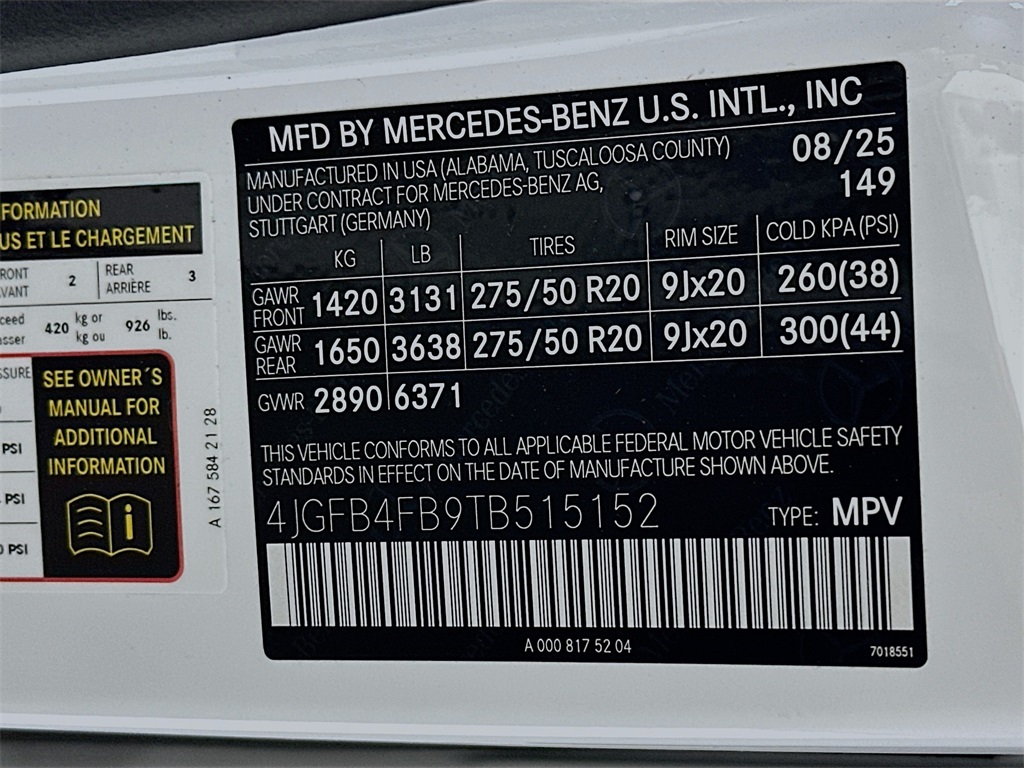 - VIN : 4JGFB4FB9TB515152