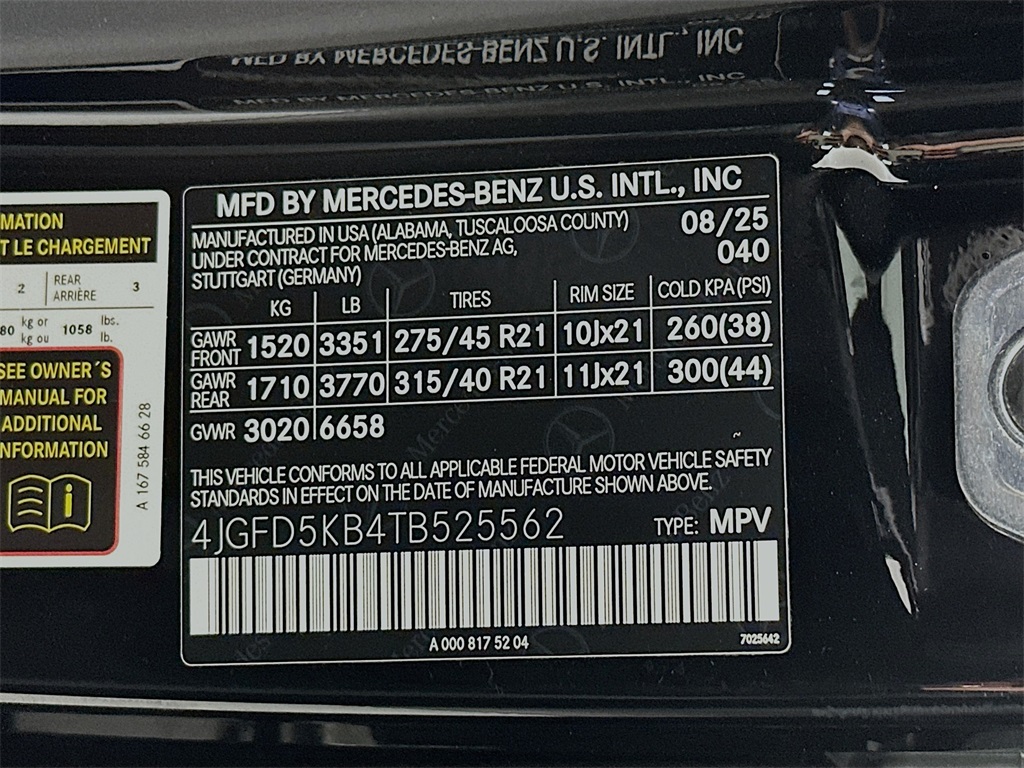 - VIN : 4JGFD5KB4TB525562