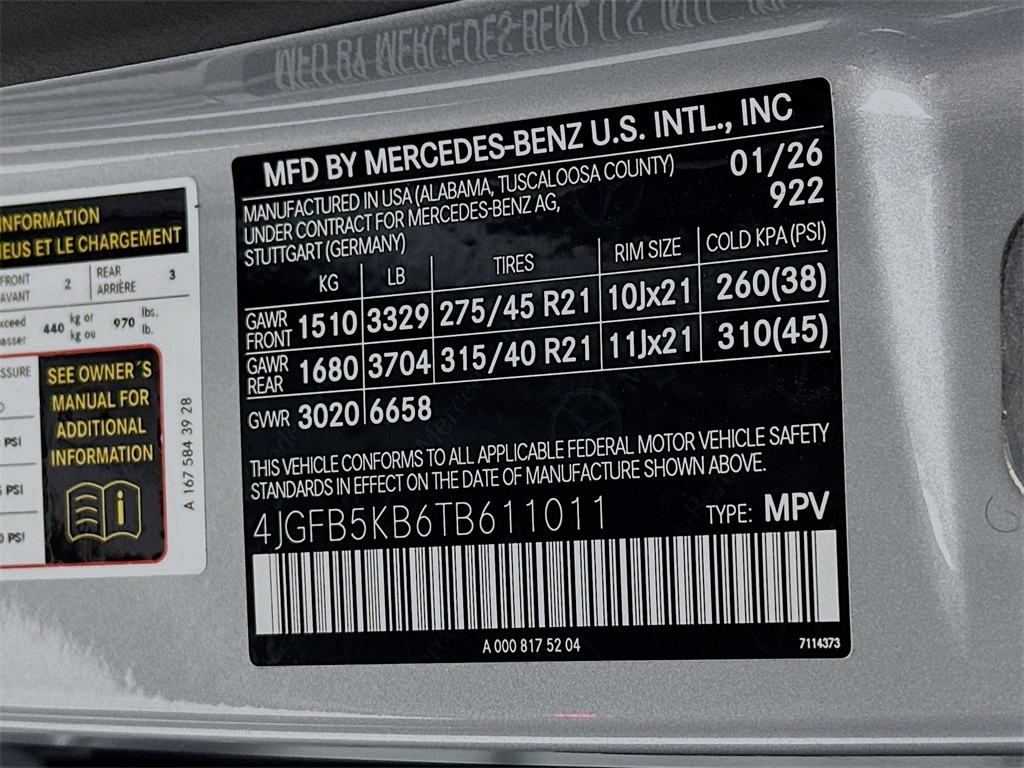 - VIN : 4JGFB5KB6TB611011