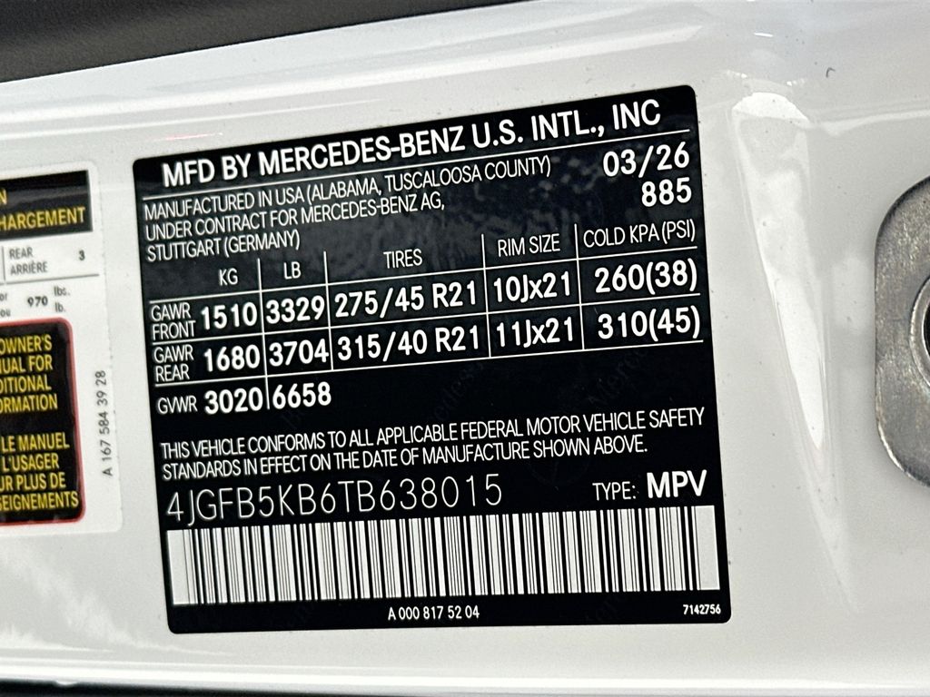 - VIN : 4JGFB5KB6TB638015
