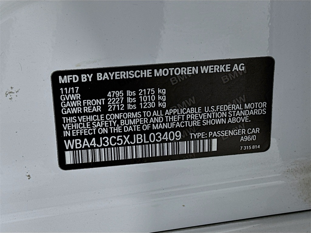 - VIN : WBA4J3C5XJBL03409