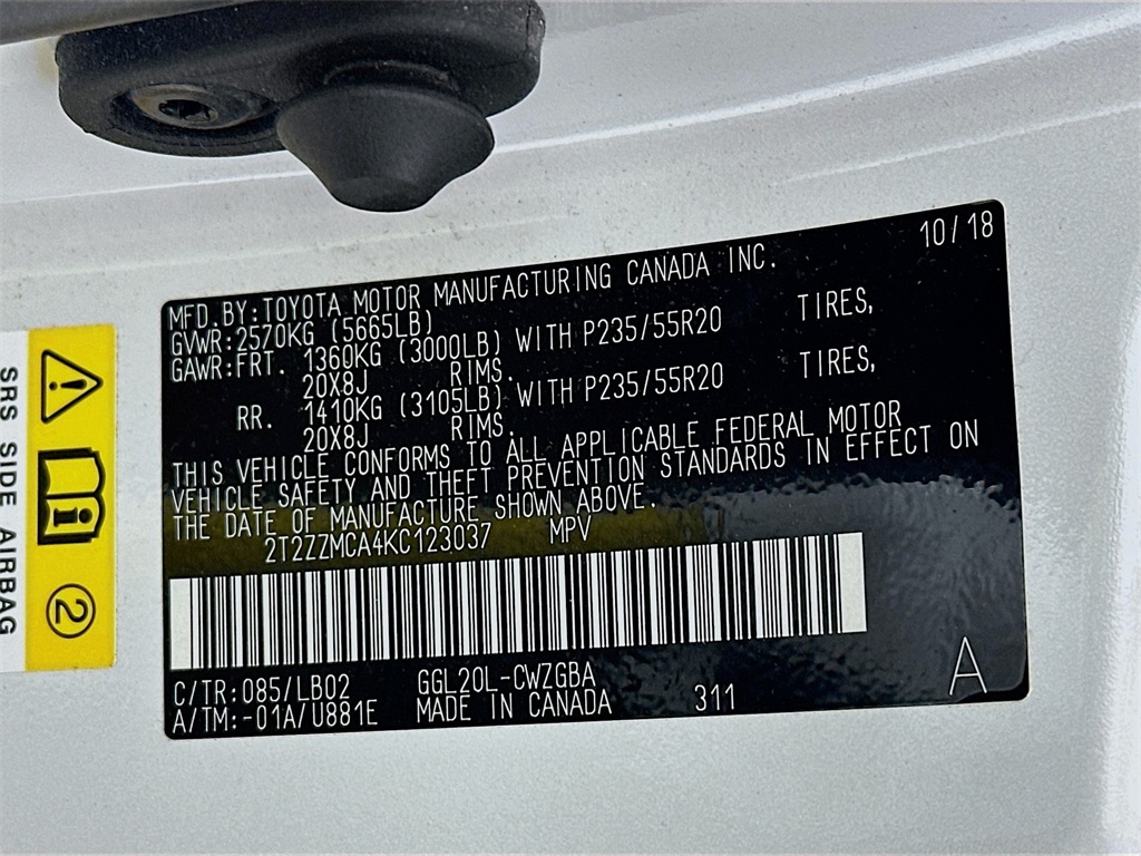 - VIN : 2T2ZZMCA4KC123037