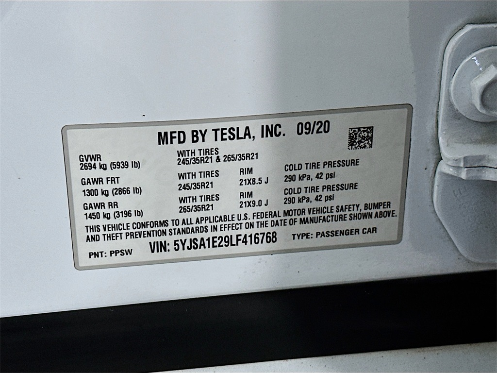 - VIN : 5YJSA1E29LF416768