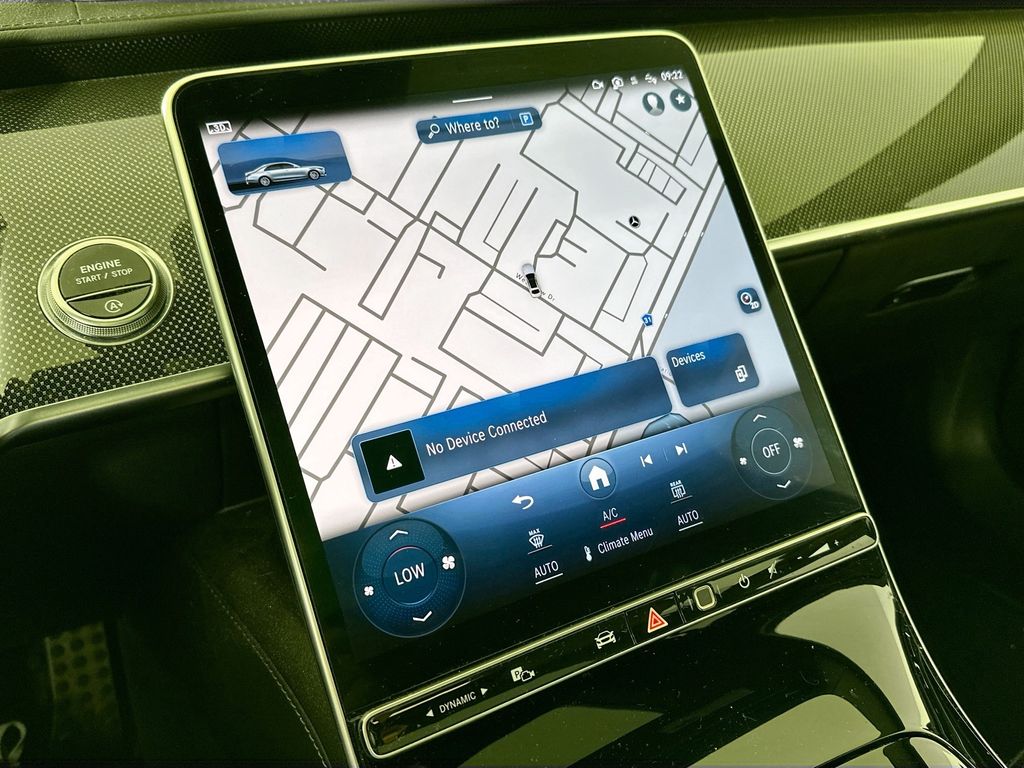 - Radio: MBUX w/Navigation -inc: 12.8" OLED touch screen, Hey Mercedes voice control, augmented video for navigation, wireless front charging, wireless smartphone integration (Apple CarPlay, Android Auto) and online music streaming