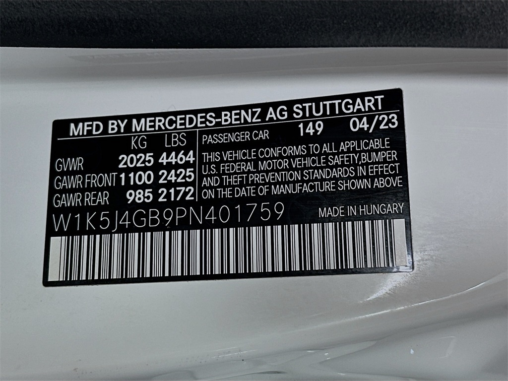- VIN : W1K5J4GB9PN401759