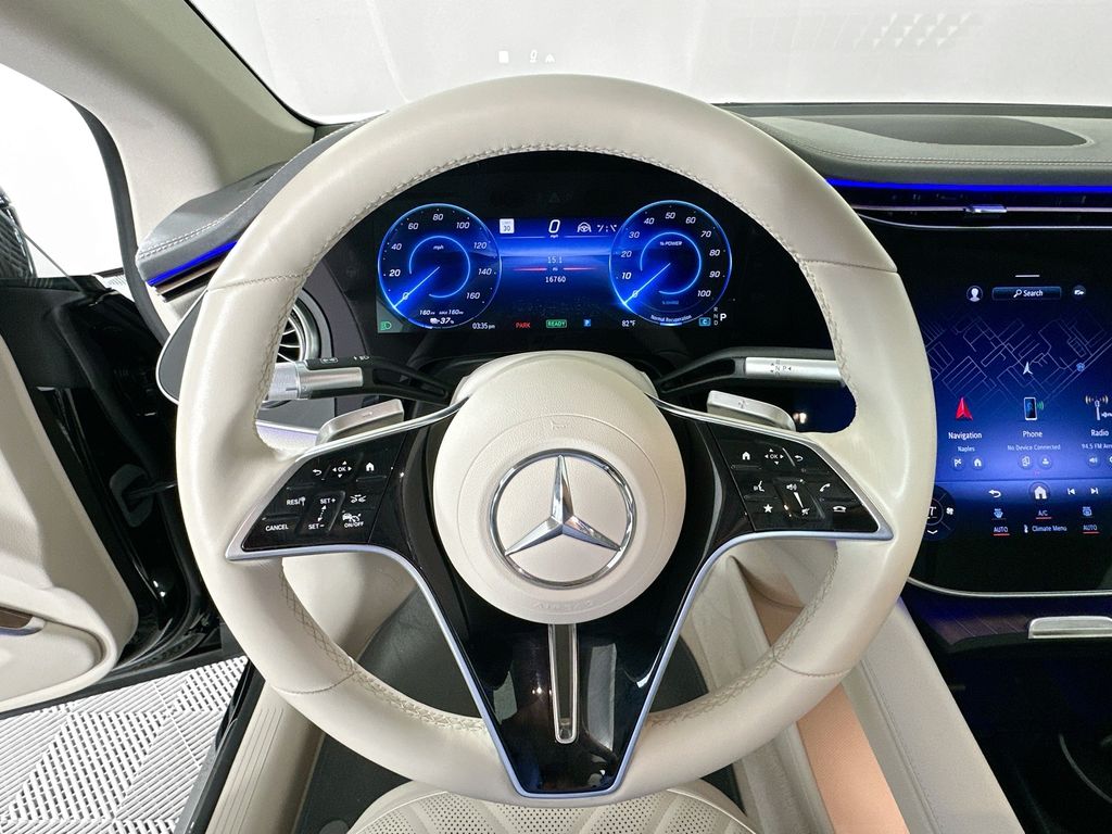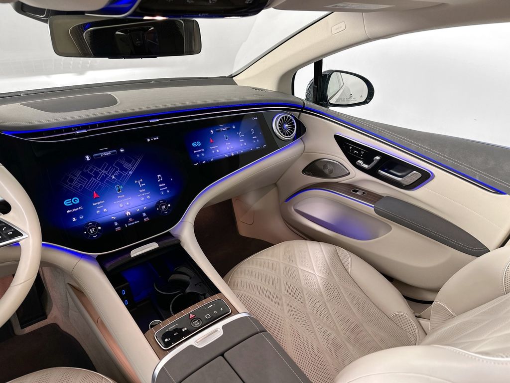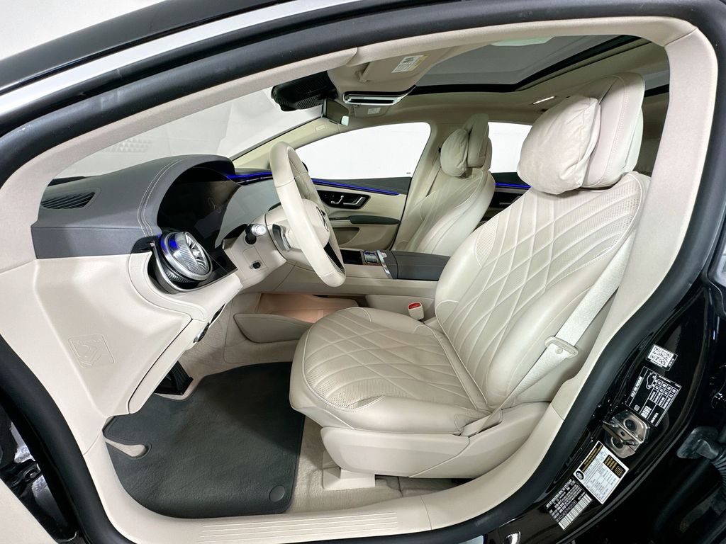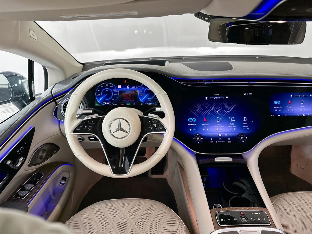 - 2023 EQS580V4 IN ONYX BLACK WITH MACCHIATO BEIGE NAPPA LEATHER INTERIOR IS EQUIPPED WITH WINTER PACKAGE, HEATED STEERING WHEEL, TRIM LEVEL PACKAGE, MULTICONTOUR MASSAGE SEATS, 4-ZONE CLIMATE CONTROL, AIR BALANCE, PREMIUM PLUS PACKAGE, EXCLUSIVE TRIM, VALET DRIVER PROGRAM, FRONT HEATED AND VENTILATED SEATS, HEAD-UP DISPLAY, HEATED REAR SEATS, ACTIVE AMBIENT LIGHTS, HYPERSCREEN, 21" AMG MULTISPOKE WHEELS AND MANY MORE OPTIONS. CALL US OR SENT AN EMAIL TO SCHEDULE A TEST DRIVE.