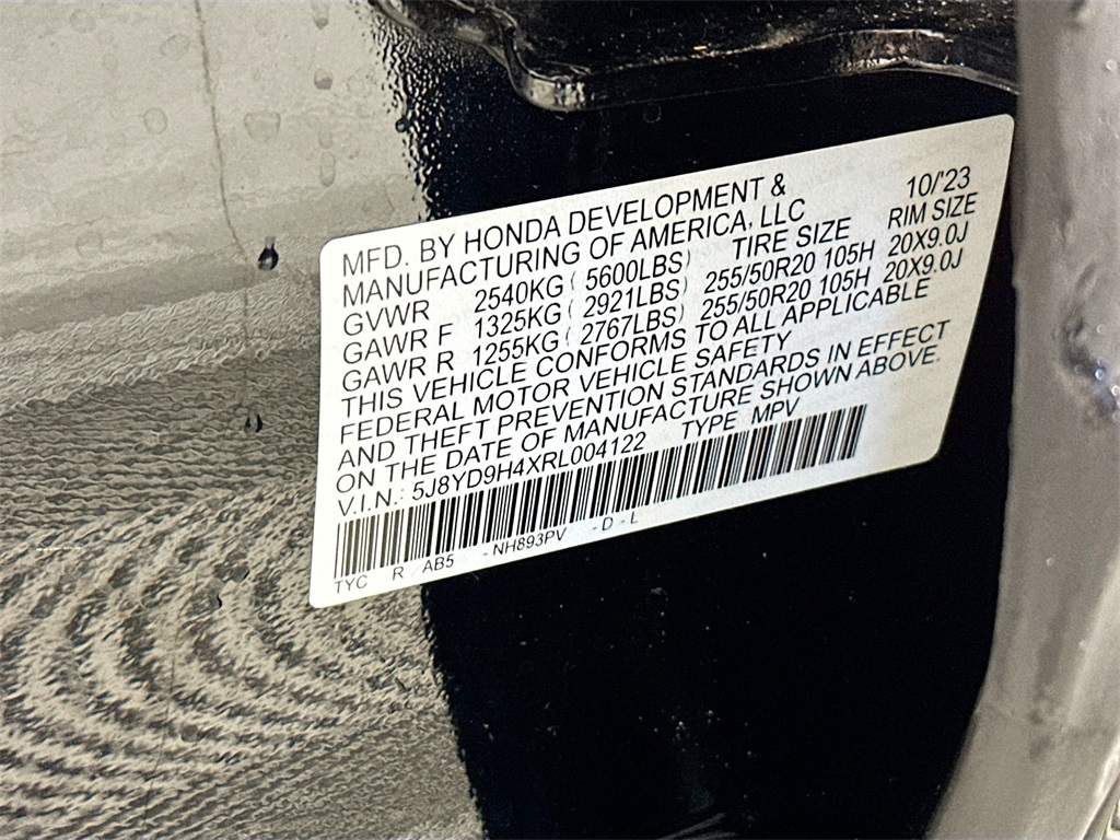 - VIN : 5J8YD9H4XRL004122