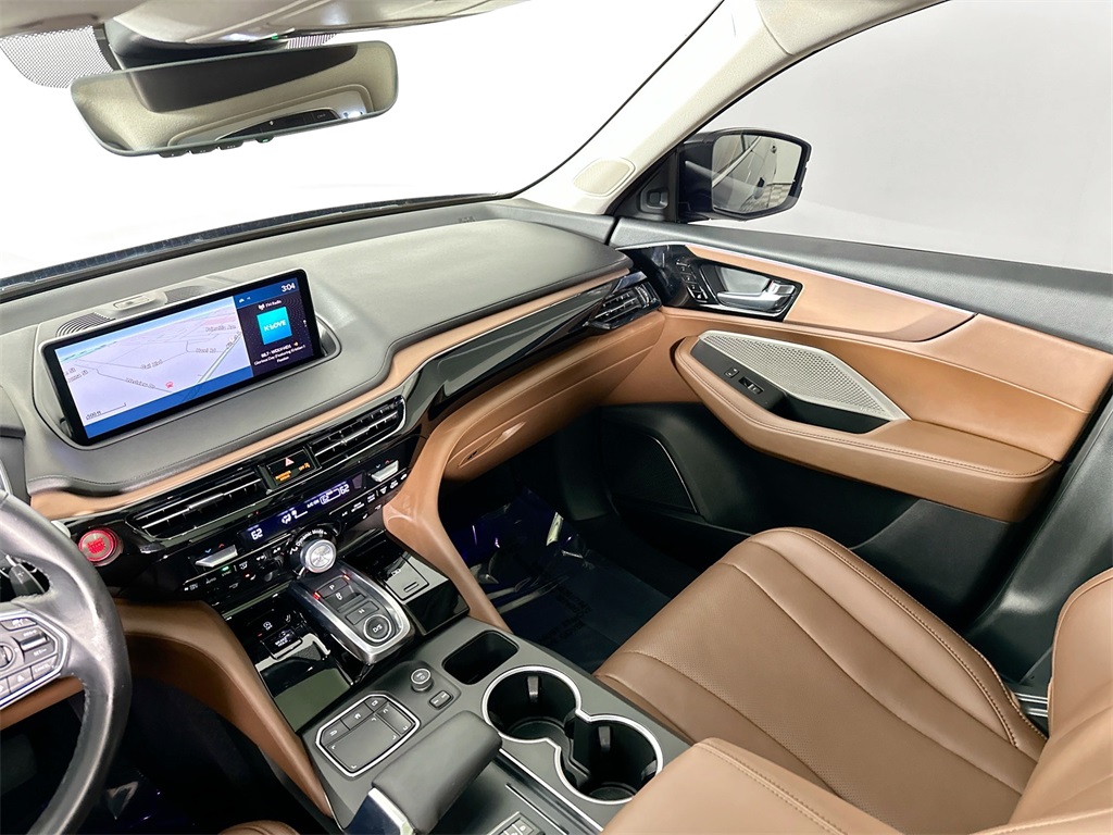 - 2024 Acura MDX with Tech Package: Majestic Black, Espresso Interior Elevate every journey with this exceptional 2024 Acura MDX. This sophisticated SUV combines striking design, advanced technology, and luxurious comfort in a flawless, low-mileage package. Finished in a brilliant Majestic Black Pearl exterior over a rich Espresso leather interior, this MDX exudes elegance and sophistication. Key Highlights & Condition Only 22,000 Miles: Barely broken in and in pristine condition. One Owner, Clean CARFAX: Peace of mind and full transparency are guaranteed with a verified history. Original MSRP of $56,000: Offering incredible value for a nearly-new luxury SUV. Technology Package Features The highly sought-after Technology Package transforms this MDX into a state-of-the-art command center: ELS STUDIO Premium Audio System: Enjoy a concert-like experience with 12 speakers, including a subwoofer. Acura Navigation System: Featuring True Touchpad Interface with 3D view for seamless navigation. Perforated Milano Premium Leather: With contrast stitching for a refined look and feel. Advanced Safety Suite: Includes Blind Spot Information System, Rear Cross Traffic Monitor, and Parking Sensors (front and rear). Iconic Design: Features 20-inch Shark Gray alloy wheels and power-folding side mirrors.