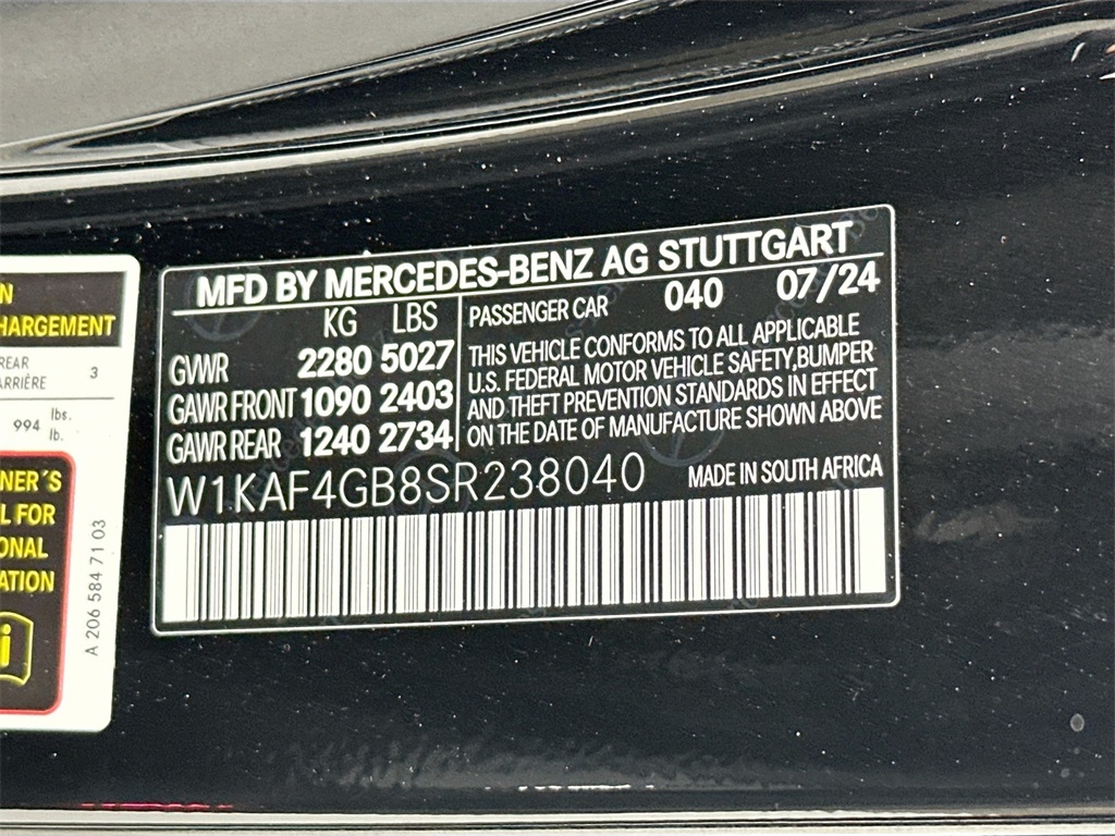 - VIN : W1KAF4GB8SR238040