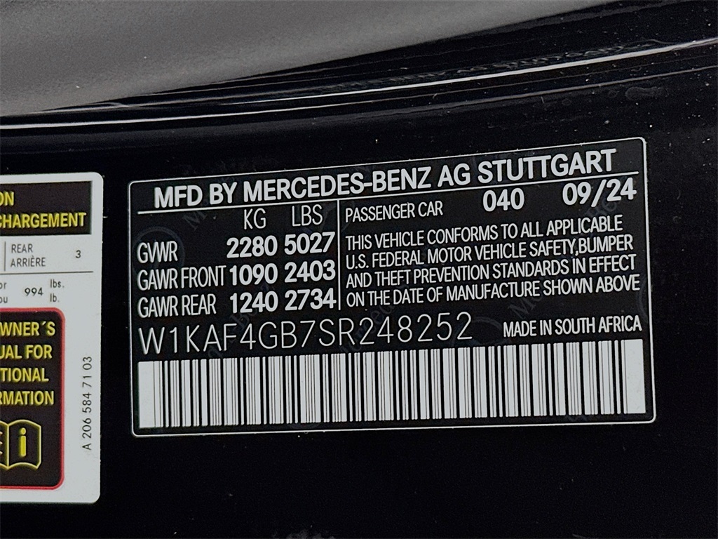 - VIN : W1KAF4GB7SR248252