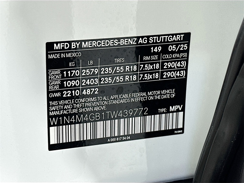 - VIN : W1N4M4GB1TW439772